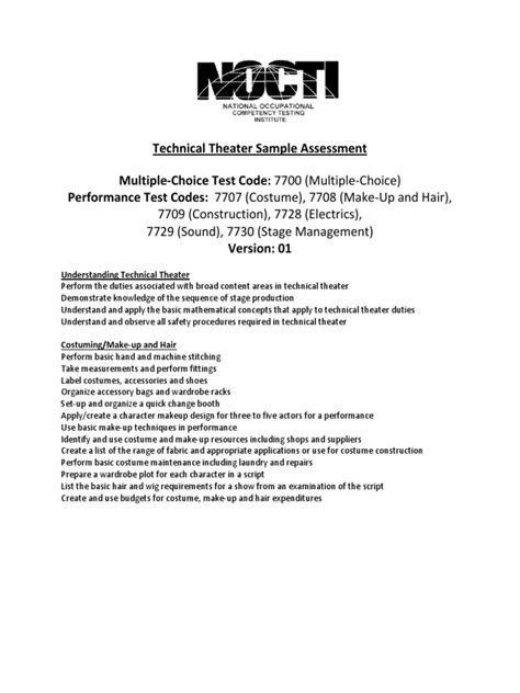 Read Online TECHNICAL THEATER SAMPLE ASSESSMENT MULTIPLE CHOICE TEST NOCTI Doc Internet Archive